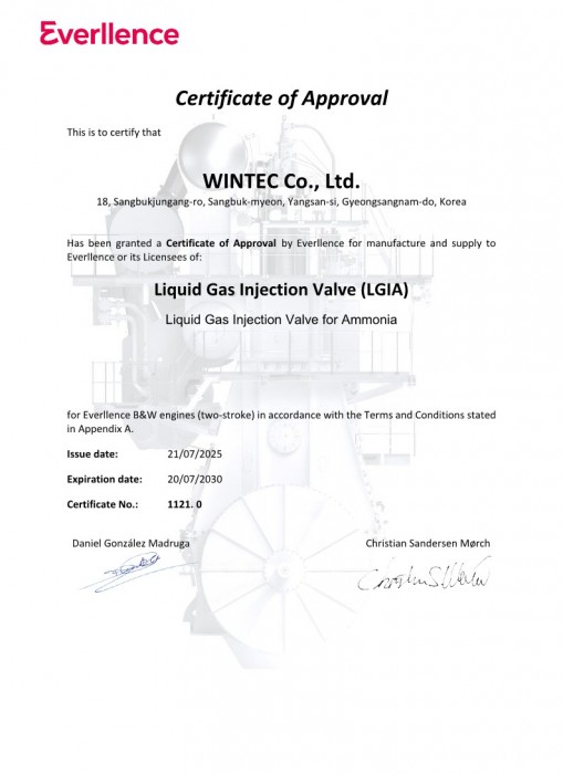 Liquid Gas Injection Valve(LGIA) Certificate of Approval from Everllence
